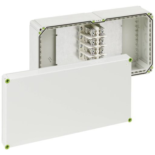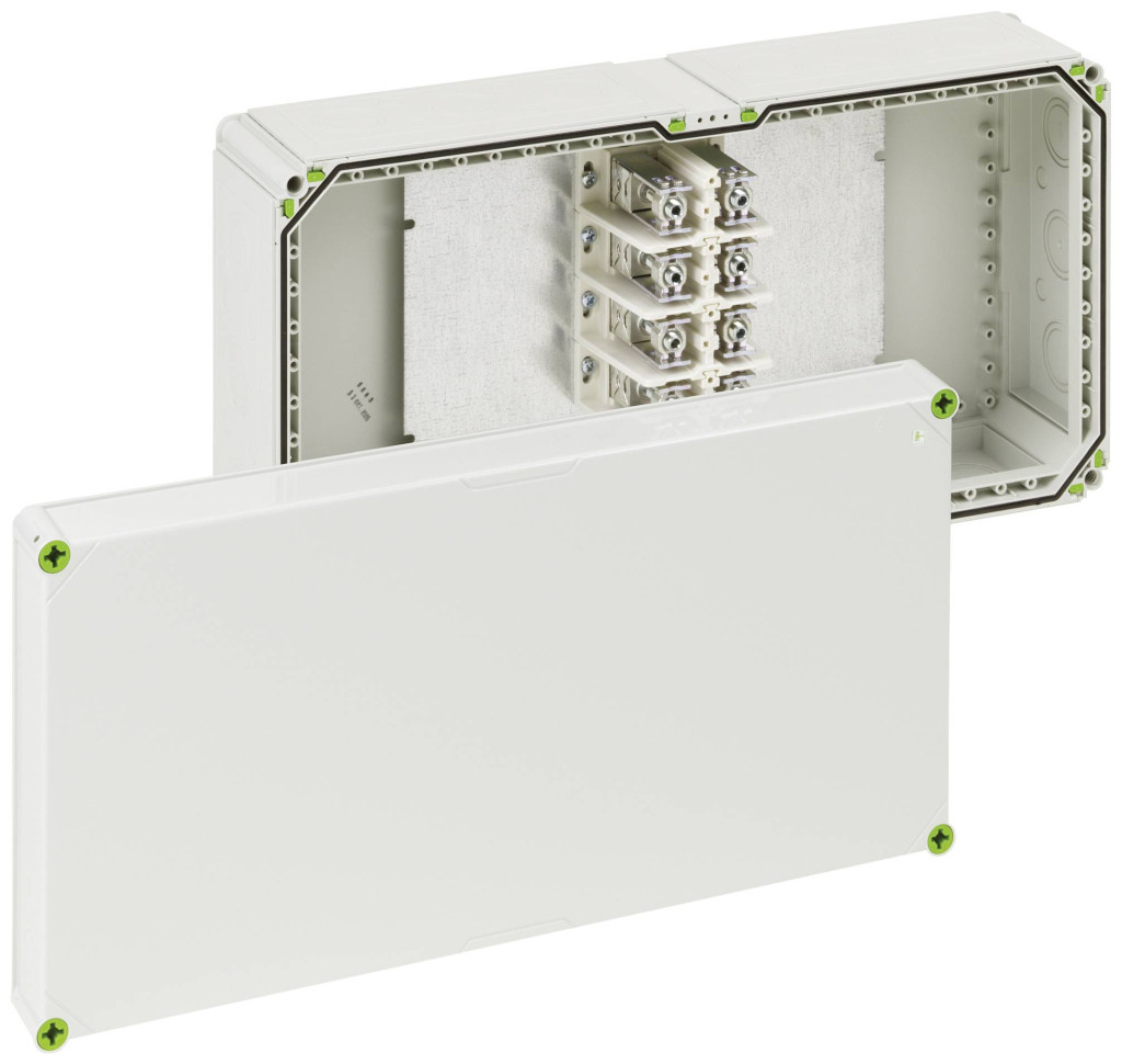 Csatlakozódoboz, ipari minőségű, Ui = 690V, időjárásálló, ütésálló, halogénmentes, lezárható, speciális csavaros kapocs a vezető felülről történő bejutásához, pólusonként 2 x 185q / 240q vagy 4 x 120q-ig, megfelelő kábelbevezetések lásd tartozékok, szürke, 4-tűs 25-től 240qmm-ig, CU / AL
