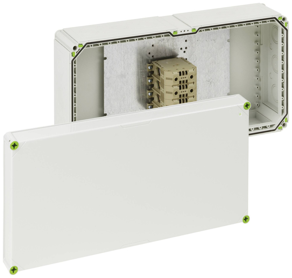 Csatlakozódoboz, ipari minőségű, Ui = 690V, időjárásálló, ütésálló, halogénmentes, lezárható, sorkapcsokkal, megfelelő kábelbevezetésekkel lásd a tartozékokat, szürke, 4-pólusú sorkapocs -70-240 nm