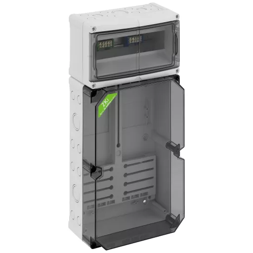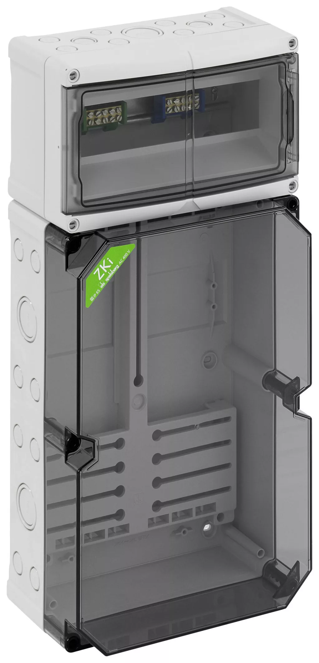 Mérőmű ház - ipari minőségű -, IP65 (ha megfelelő kábelbevezetéseket használnak), átlátszó fedéllel, alapértelmezés szerint lezárható, beépített mérőkereszttel és mérő rögzítőcsavarokkal, alaphelyzetben lezárható fogyasztói területtel, 35 mm-es szabványos sínvel és PE / N kettős csatlakozókkal, IP54 szerelőelemmel, reteszeléssel és Szigetelődugasz, IK08 ütésállóság, II védettség, névleges szigetelési feszültség Ui 400V, halogénmentes, alkalmas a DIN 43861-2 szerinti hullámosodásvezérlőkhöz, hárompontos rögzítéssel rendelkező mérőkhöz és max. Mélységig. 80 mm.