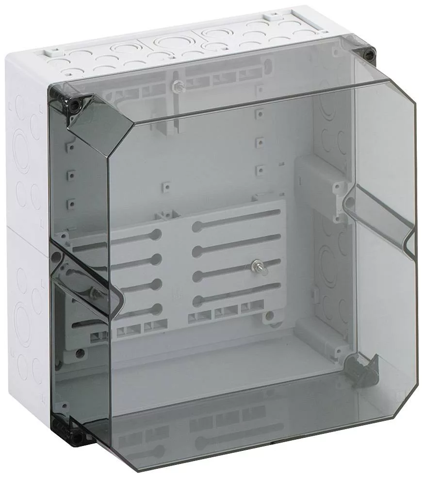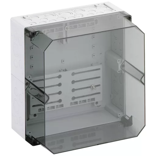 Mérőház, ipari minőségű, átlátszó fedéllel, alapértelmezés szerint zárható, háromfázisú mérőkhöz szerelt mérőkereszttel és mérő rögzítő csavarokkal, dupla membrán foglalattal, tömítő és szigetelő dugókkal