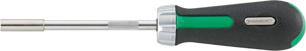 · Egyszerű irányváltás (balra, jobbra és rögzített) a kapcsológyűrű rövid elfordításával · Ergonomikusan kialakított, csúszásmentes 2 komponensű fogantyú az optimális erőátvitel érdekében · Tárolórekesz a fogantyú végén 6 bit számára | gombnyomásra nyílik (1-es méret) · 1/4 "DIN 3126 / ISO 1173 forma C 6.3 külső hatszögű csavarhúzó-hüvelyekhez · 1/4 "-es dugókulcs betétek használhatók a 3115/1 számú csatlakozóaljzattal (külső hatszög és külső négyzet 1/4") · Egyszerű bitcsere a mágneses hatszögletű foglalatnak köszönhetően · Recézett nagy sebességű zóna a csavarok gyors előforgatásához Nagy teherbírású mechanizmus 48 foggal (7,5°-os munkaszög)