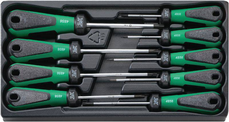 · 9 db TX csavarhúzó készlet 3K DRALL® (TX TAMPER-ÁLLÓ) · Tartalom: TX-hez 4856-os furattal: T8 | T9 | T10 | T15 | T20 | T25 | T27 | T30 | T40 (A meghajtó hegyén lévő lyukkal)