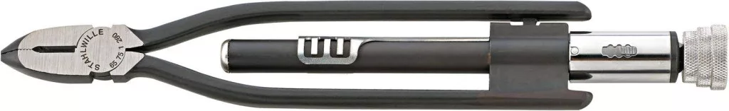 · Csavaros rögzítéshez · További vágóéllel és fogazott pofákkal a biztos tartás érdekében · 40°-os ferde D. (mm) 1,6 mm-es (csökkenő hüvelyk) vezetékekhez 0,06) · Jobbra és balra kanyarodáshoz · Automatikus visszatéréssel · Króm-vanádium