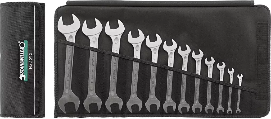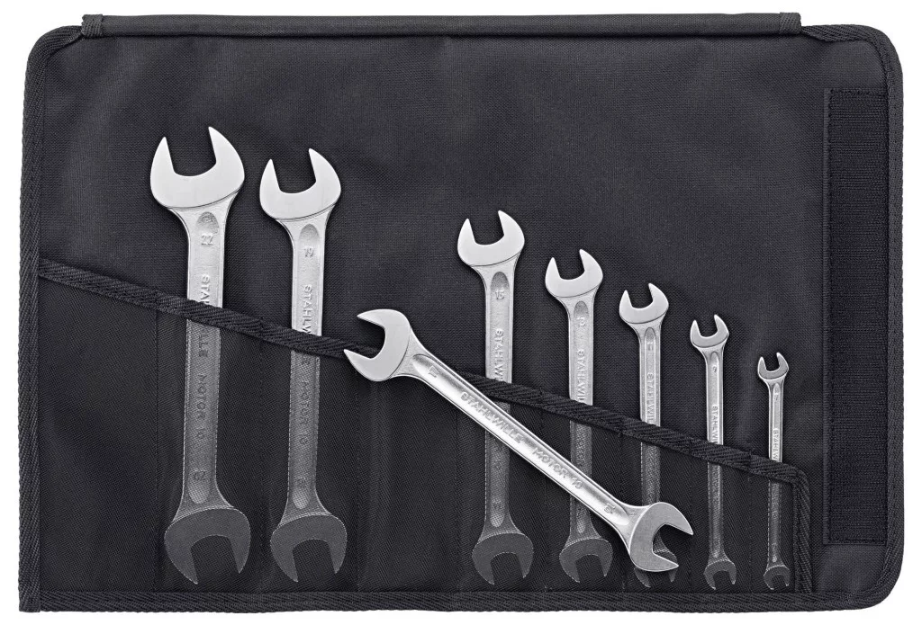 Dupla nyitott végű csavarkulcskészlet MOTOR tekercses zacskóban, 8 darab