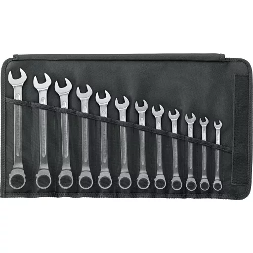 Ratcheting kombinált csavarkulcs készlet OPEN-RATCH, tekercselt tokban, 12 darab