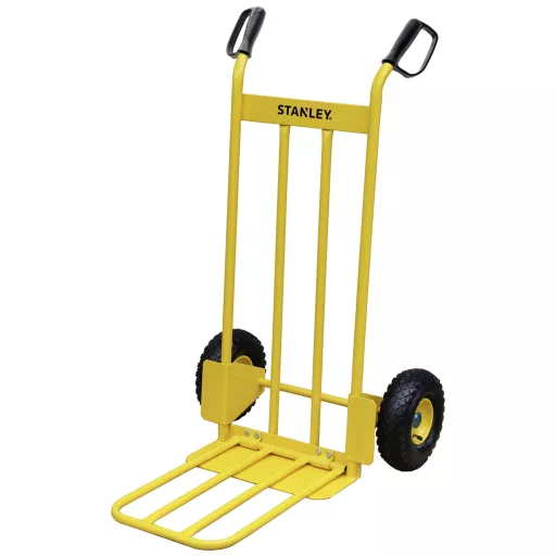 Ez a Stanley kézi targonca extra nagy rakodófelülettel könnyű és biztonságos kezelést tesz lehetővé kereskedelmi használatra. Erős, strapabíró acélból készült, és a hátoldali vezetőknek köszönhetően könnyű kezelést tesz lehetővé. A műanyag fogantyúknak köszönhetően jobban védi az ujjait használat közben, és ezáltal jobb a fogás. A zsákos targonca ideális beltéri és kültéri használatra a nagy pneumatikus kerekeinek köszönhetően.
