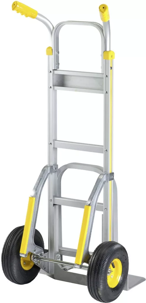 Jellemzők: Könnyen használható · Összecsukható kézikocsi · Kompakt, kis súlyú kivitel · Néhány másodperc alatt nyitható és összecsukható · Fontos alkatrészek tartós alumíniumból készülnek · A zsákos teherautó többek között ideális a raktárban, a raktárban, a szállításokban és a szállítmányozók számára.