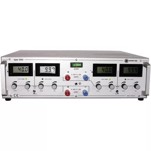 Lineáris laboratóriumi tápegység külön digitális kijelzővel a feszültség és az áram számára. A masszív kivitelnek, egyszerű kezelésnek és a jó szabályozási tulajdonságoknak köszönhetően ideálisak laborba, műhelybe és összeállításhoz.