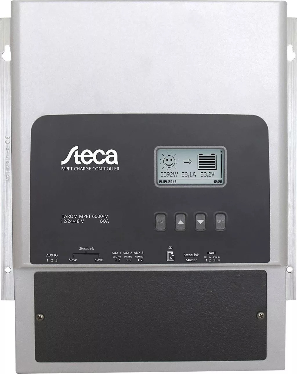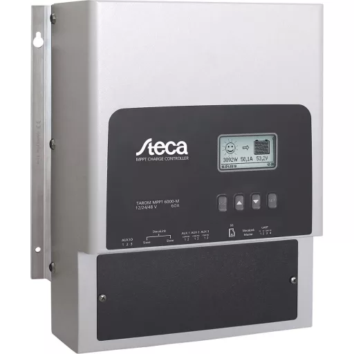 Kiemelkedő hatékonyság az egyedi védelmi funkciókkal kombinálva jellemzi a Tarom MPPT 6000-et. Két bemenet áll rendelkezésre, amelyek párhuzamosan csatlakoztathatók vagy külön használhatók. Minden bemenetnek megvan a saját MPP trackerje. Tehát két töltésszabályozó áll rendelkezésre egy eszközben. A különböző modulmezők rugalmasan kombinálhatók egy töltővezérlőben.
