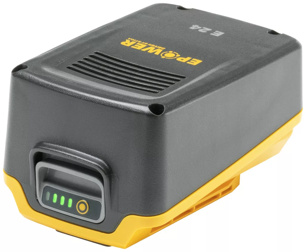 A STIGA E 24 akkumulátor kompatibilis a STIGA 100 sorozat összes eszközével, és azt is felismeri, hogy éppen melyik készülékben használják. Ily módon az akkumulátor a szükséges energiakibocsátást a készülékhez tudja igazítani, és így nem csak a működési időt növeli, hanem az akkumulátor élettartamát is. Az E 24 egy 20 voltos akkumulátor, 4 Ah kapacitással. Töltő nem tartozék.