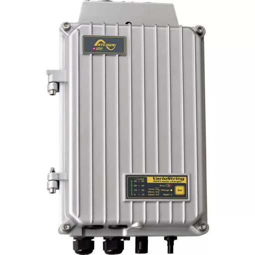 Jellemzők: Négyfokozatú töltő az akkumulátor hosszabb élettartama érdekében · Teljes kijelzés, konfiguráció és adatfelvétel az RCC-03/03 segítségével · Alacsony önfelhasználás · Egyszerű és biztonságos csatlakozás a SUNCLIXTM PV csatlakozó használatának köszönhetően · Teljesen konfigurálható · Legfeljebb 15 VarioString csatlakoztatható párhuzamosan · Szolár-, szél- vagy vízellátás · Automatikus feszültségérzékelés · Fordított polaritás elleni védelem · Rövidzárlatbiztos · Túl- és mélykisülés-védelem · Fordított áramvédelem · LED-kijelző · Robusztus és tartós