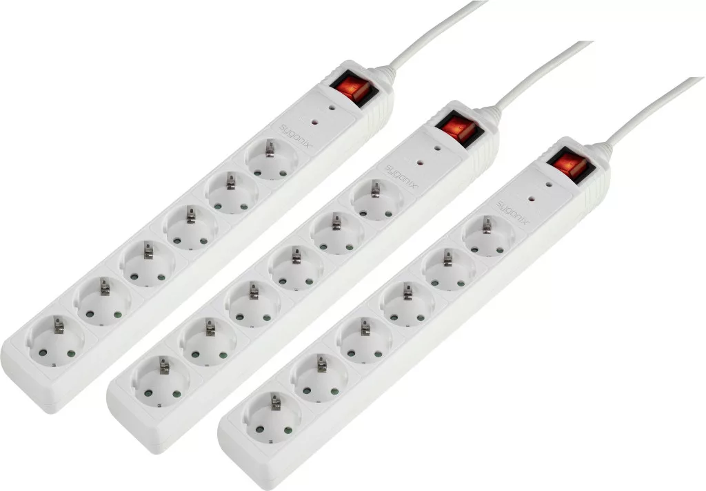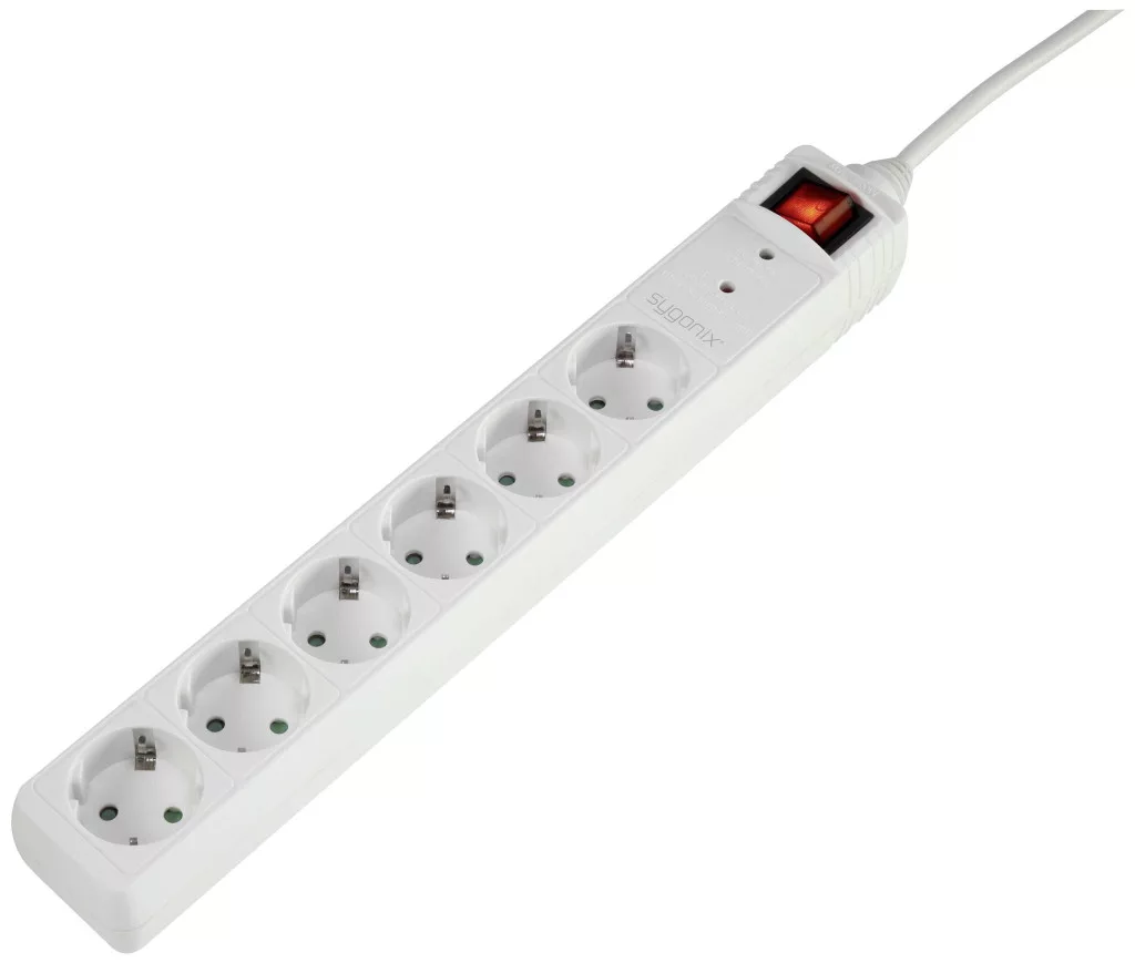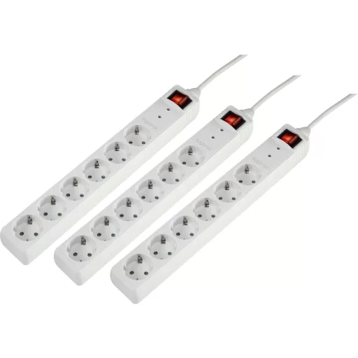 Technical specifications: Product.PlasticfreePackaging: #####PlastikfreieVerpackung · Alkalmazási terület: Beltér · Anyag: PP · Dugaljak száma: 6 · Hálózati csatlakozó típus: Védőérintkezős · Hálózati elosztó jellemzők: Gyermekvédelem,Túlfeszültség elleni védelem,Kapcsolóval · Kábel típus DIN/VDE szerint: H05VV-F 3G 1,5 mm² · Kábelhossz: 1.40 m · Levezető áram: 9 kA · Méret, hossz: 365 mm · Méret, magasság: 52 mm · Méret, szélesség: 48 mm · Szín: Fehér · Túlfeszültség elleni védelem: Dugalj · Üzemi feszültség: 250 V
