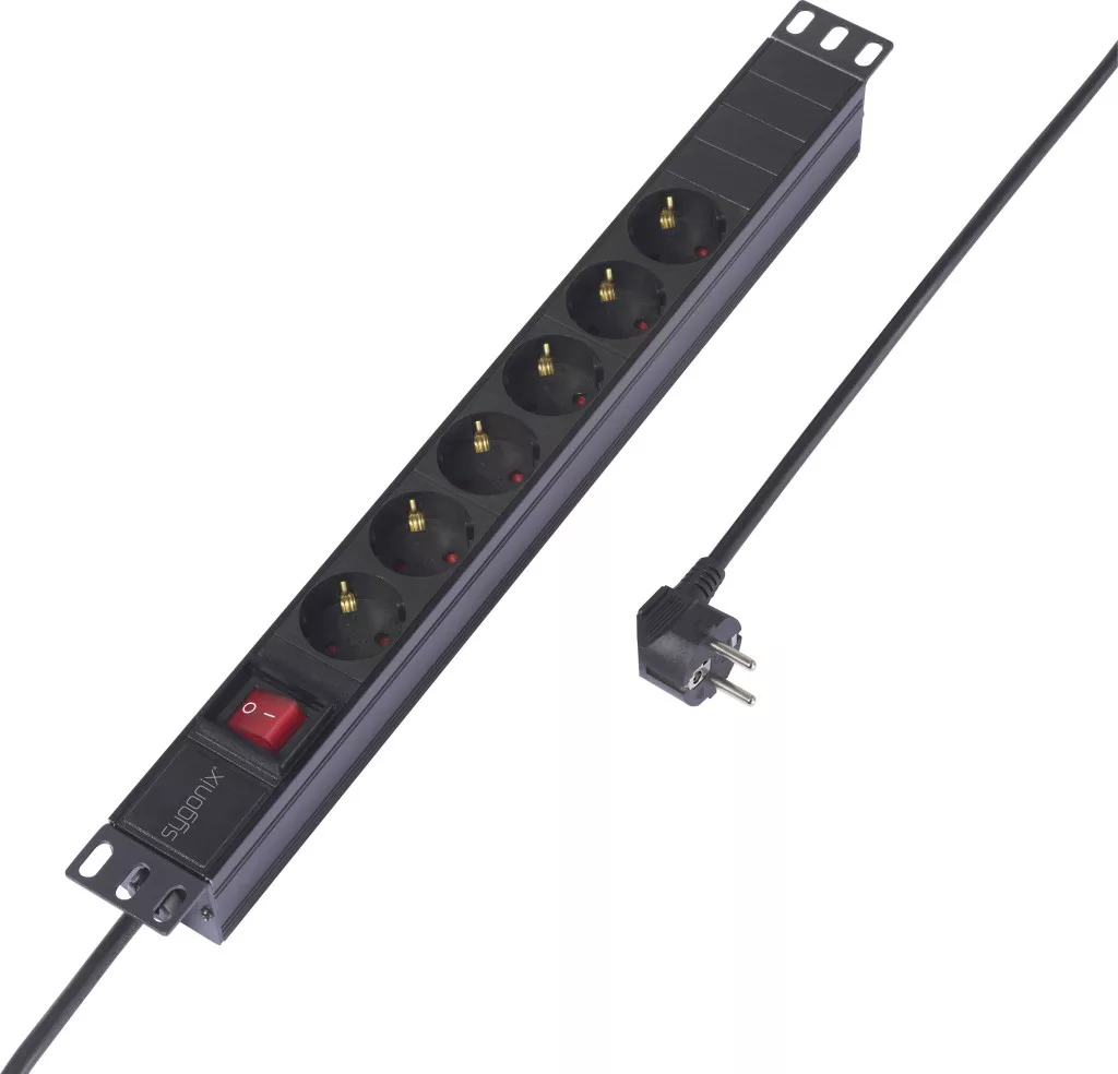 Sygonix SY-6736978 Elosztó, 19" 6 részes Fekete Védőérintkezős 1 db