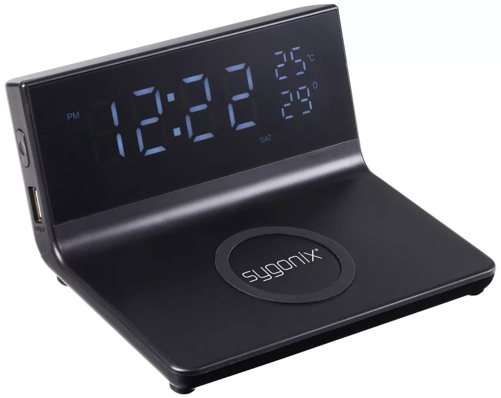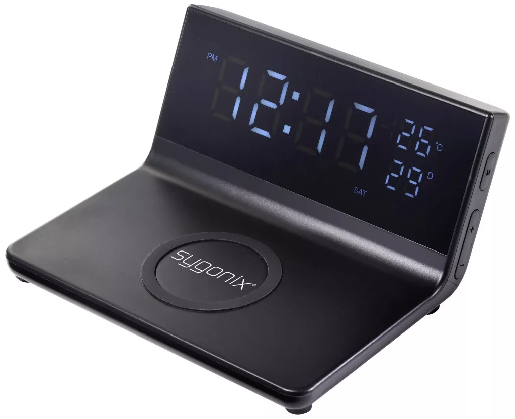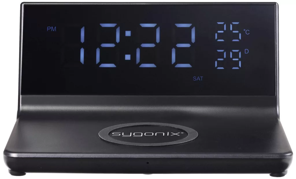 Sygonix digitális ébresztőóra Qi töltőpulttal