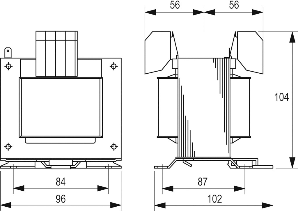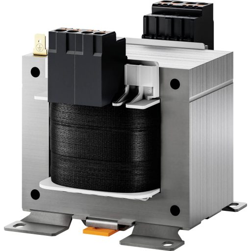 Kis bekapcsolási áramú szabályozó-, biztonsági- ill. leválasztó transzformátor szorítós húzórugós csatlakozóval és kombi talplemezzel csavaros és hordsínes szereléshez (TS-35 sínek, 250 VA-ig), DIN 50022.