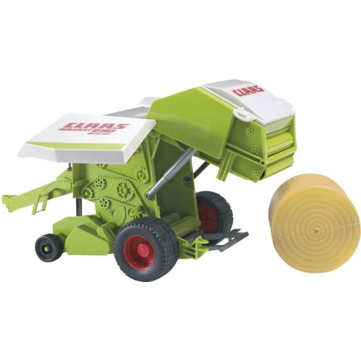 A Claas Rollant 250 szalmabálázó lehajtható és tapintókerekek hajtják. Az oldalsó fedél és a prés hátulja kinyitható. A behelyezett bála automatikusan kilökődik a tárológomb működtetésével. A bálafóliát pótkocsikapcsolóval lehet rögzíteni (a bálafóliát nem tartalmazza). Egy körbála van benne, és a futófelület abroncsai egészítik ki a képet. A szórakozás kedvéért a Claas Rollant 250 körbálázó kombinálható a professzionális sorozat összes traktorával és a bálacsomagolóval, cikkszámmal: 02122, a kerekes bála cikkszám: 02314 külön is kapható.
