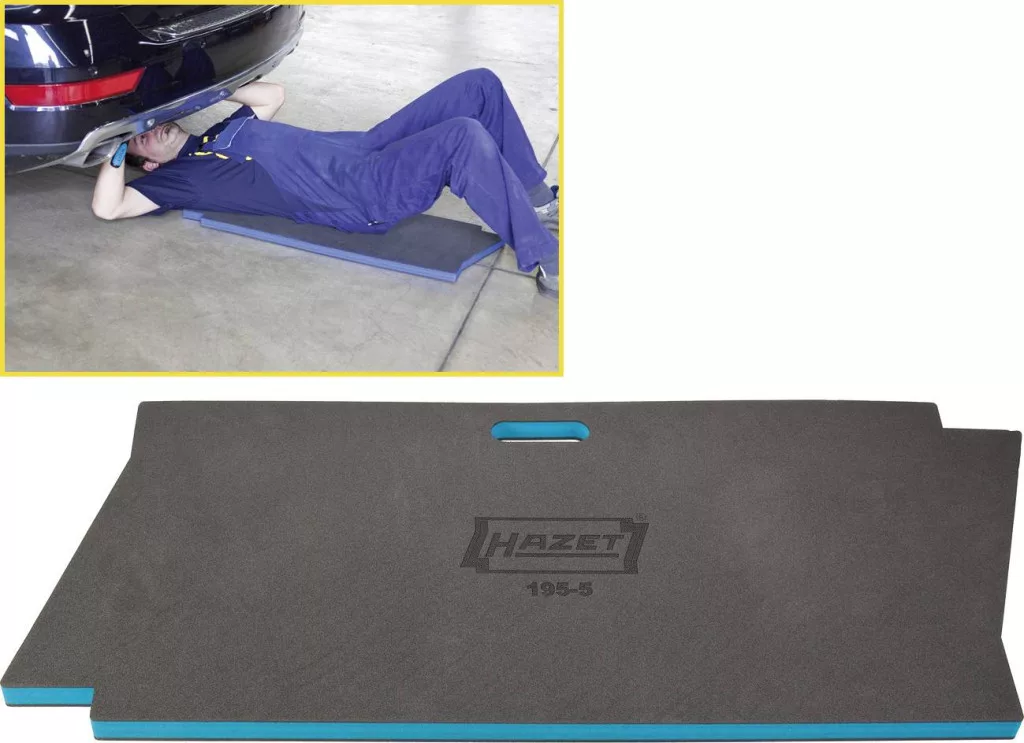 Jellemzők: HAZET logo formájú · Még nagyobb kényelem az új habminőséggel · Kimosható · Nagy alátét szerelők számára · Nem abszorbáló habanyagból, zárt cellákkal · Hordozófüllel.