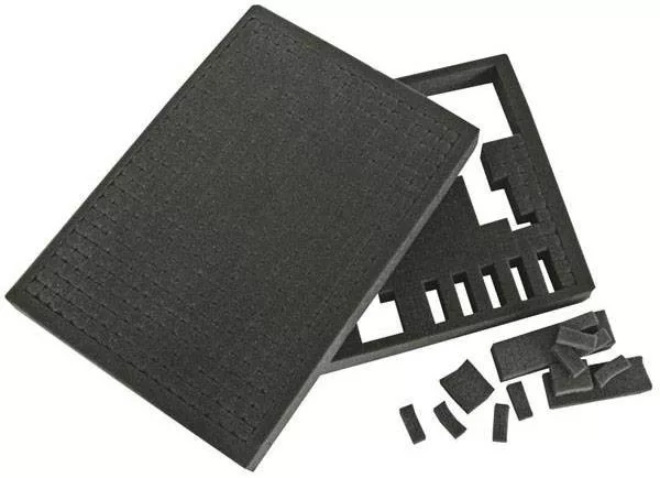 2 réteg habanyag (4 cm) előre kivágott cellákkal (1,5 cm) - mindegyik réteg tetszés szerint eltávolítható vagy levágható, hogy az eszközök szilárdan a helyükön legyenek (a szerszámok nem tartoznak hozzá).