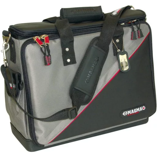 Műszaki adatok: Alkalmazási terület: Technikus · Anyag: Poliészter · Méret, hossz: 460 mm · Méret, magasság: 420 mm · Méret, mélység: 210 mm · Méret, szélesség: 460 mm · Szerszámos táska jellemzők: vízálló · Szín: Fekete,Piros,Szürke · Súly: 3900 g · Típus (kategória): Szerszámos táska tartalom nélkül