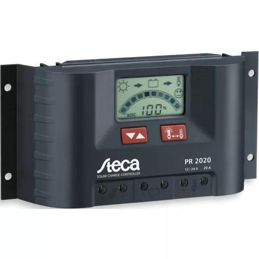 A Steca PR 10-30 töltésszabályozó sorozat a napelemes töltőszabályozók csúcsát jelenti. Az újból jelentősen javított Steca-AtonIC töltési állapot meghatározási módhoz kapcsolódó legújabb töltéstechnológiák optimálisan gondozzák és felügyelik az akkumulátort. A készülékhez 900 Wp modul-teljesítmény csatlakoztatható. A nagy kijelző szimbólumokkal tájékoztatja a használót az üzemállapotról. A töltöttségi állapotot a benzintank jelzéshez hasonlóan vizuálisan mutatja a kijelző. A feszültség, áramerősség és töltöttségi állapot digitálisan és számjegy formában is leolvasható a kijelzőn. Ezen kívül a szabályozónak energia mérője is van, amelyet a használó maga nullázhat.