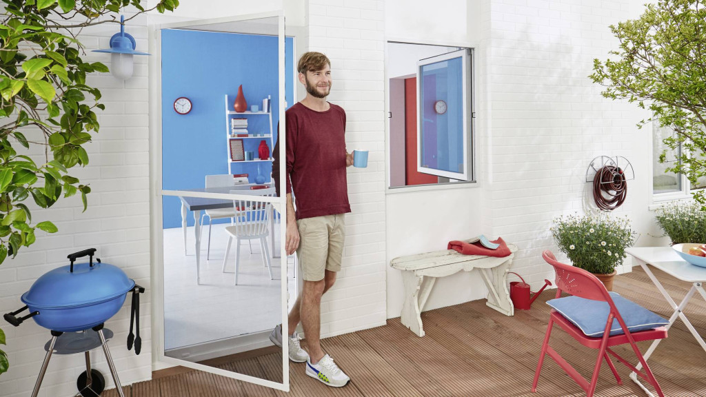 Önzáródó rovarvédő ajtó stabil alumínium kerettel, profi minőségben. Amíg kényelmesen ki- és bejárkál, a rovarvédő hálós ajtó megakadályozza, hogy a legyek, szúnyogok és darazsak bejussanak. Az egyedülálló rendszer, nagyon lapos profilja ellenére nem csavarodik meg. Egyszerűen felszerelhető az Easy-Fit rendszernek köszönhetően. Megbízható védelmet nyújt a rovarokkal szemben nyitott ajtó mellett is.