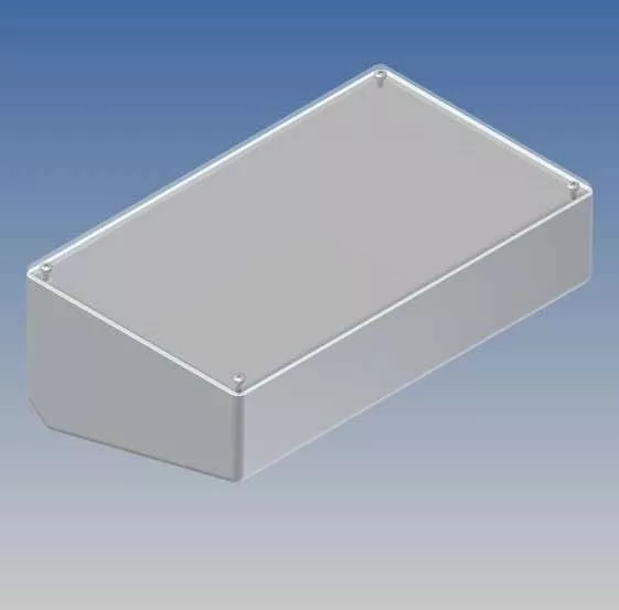 Műanyag ház, 15 ° -os ferde, átlátszó polikarbonát burkolattal, amely az alatta lévő 0,5 mm vastag eloxált alumínium lemez védelmére is szolgál. Az alap falai integrált vezetőkkel és rögzítő oszlopokkal rendelkeznek a NYÁK számára. A sarkok lekerekítettek. Fényes felület. Szerelés 4 csavarral.