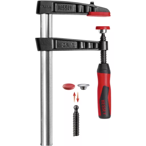 Többször próbálták lemásolni, de sohasem sikerült: Az eredeti Bessey temperöntvény csavaros gyorsszorítók már 1936 óta klasszikusok a gyorsszorítók között. Összetéveszthetetlen az egyedülálló üreges profil sínnek és a karakteres, hullámmal erősített temeröntvény karnak köszönhetően. A beépített Bessey csúszás elleni védelem gondoskodik a legnagyobb biztonságról. Ezért ilyen eredményesek az eredeti Bessey temperöntvény csavaros gyorsszorítók már évtizedek óta. Ideálisak az összes olyan alkalmazáshoz, ahol nagy erőre és merev szorításra van szükség. Győződjön meg róla saját szemével! Max. 6000 N szorítóerő. Jó minőségű 2 komponensű műanyag fogantyú. Szerszám nélkül cserélhető nyomólemez (800 mm-es kinyúlástól). Stabil üregprofilsínek recézéssel megerősítve a torziós erők ellen Bessey csúszás elleni védelem (80 mm kinyúlástól). Fesztáv: 300 mm, kinyúlás: 140 mm.
