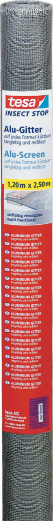 Műszaki adatok: Alkalmas: Tesa · Alkalmas (kültérre/beltérre): Beltérre/kültérre · Méret, hossz: 2.5 m · Méret, szélesség: 1.2 m · Szín: Antracit · Termék típus: Szúnyogháló tartalék tekercs