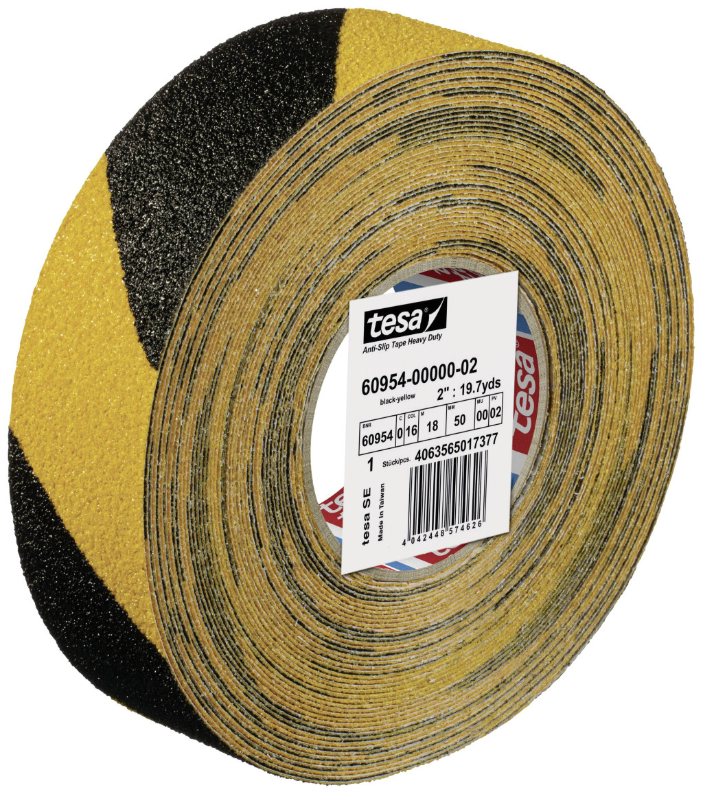 tesa® Heavy Duty csúszásgátló ragasztószalag - csúszásmentes ragasztószalag tartós, nagy igénybevételű alkalmazásokhoz, egyik oldalán öntapadó - 18 mx 50 mm - fekete-sárga