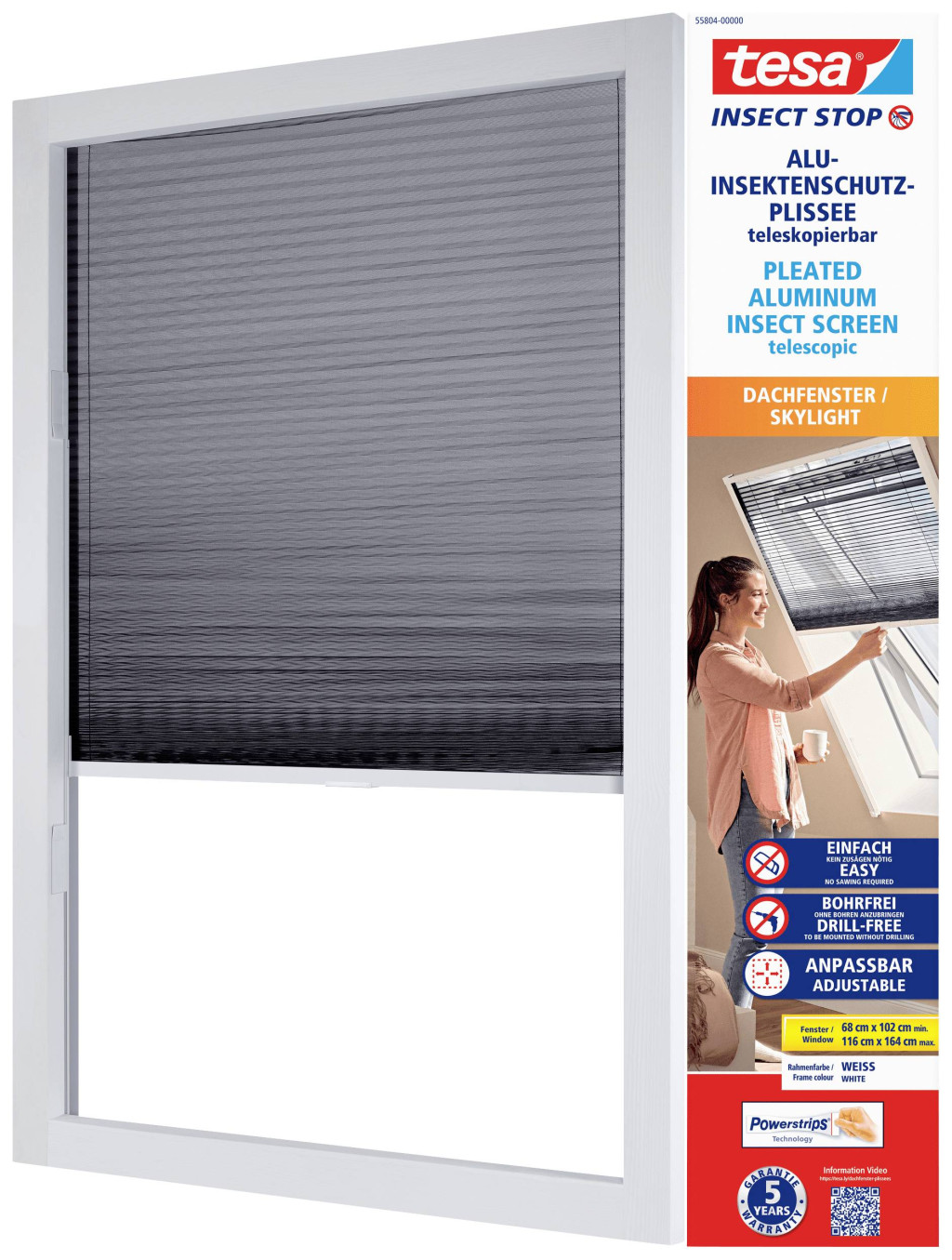 tesa alumínium rovarvédő redőzött teleszkópos - rovarvédő roló tetőablakhoz - könnyű telepítés fúrás nélkül a praktikus tesa Powerstrips technológiának köszönhetően