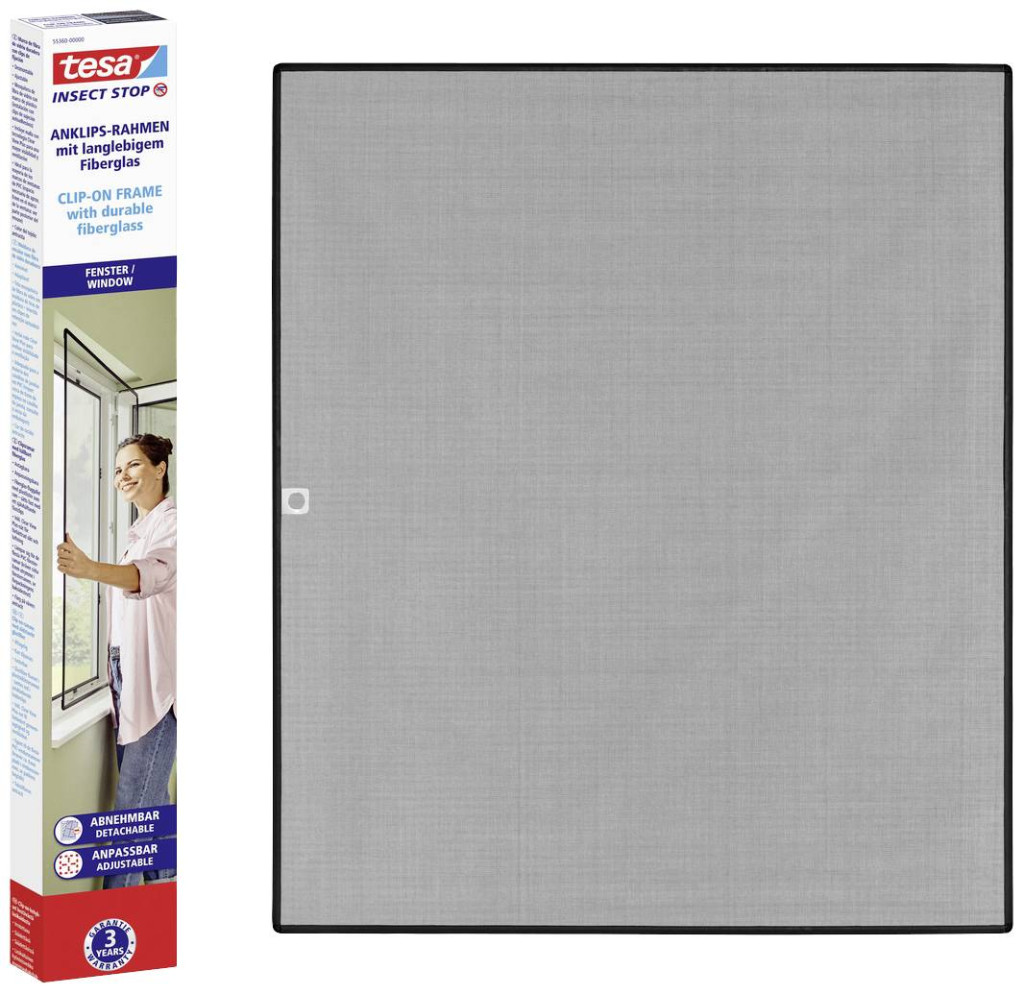 A csíptetős kerettel ellátott tesa Insect Stop megbízható védelmet nyújt a rovarok és a karcok ellen, egyszerű felszereléssel és nagy tartóssággal. A szúnyogháló felszerelése egyszerűen kivitelezhető. Az ablak bemérése után a 4 db műanyag csíkot méretre vágjuk és összekötjük egymással. A műanyag csíkokról eltávolítod a védőfóliát és a saját készítésű keretet a hálóra helyezed, hogy ne csússzon el. Ezután megfordítja az egész keretet, beleértve a hálót is. A fedőcsíkokat ezután erősen rányomják a keretre - így a szúnyoghálót rögzítik a keretben. Most már csak a túlnyúlást kell levágni egy használati késsel. Az öntapadó rögzítő kapcsok az ablakkeretbe vannak ragasztva. A rögzítőkapcsok alkotják a tartót, amelyre a keret egyszerűen a helyére pattintható. Ez azt jelenti, hogy a szúnyogháló könnyen behelyezhető és újra eltávolítható. Ez megkönnyíti például az ablakok tisztítását vagy a hűvösebb évszakba való átállást. Maga a szúnyogriasztó strapabíró üvegszálas anyagból készült. Az antracit színű Clear View Plus háló különösen átlátszó és szinte láthatatlan az ablakon. Ez azt jelenti, hogy a bosszantó kártevők kint maradnak anélkül, hogy szabad szemmel kellene nézniük. A háló magas UV-állóságával is lenyűgöz, ezért több évig használható.