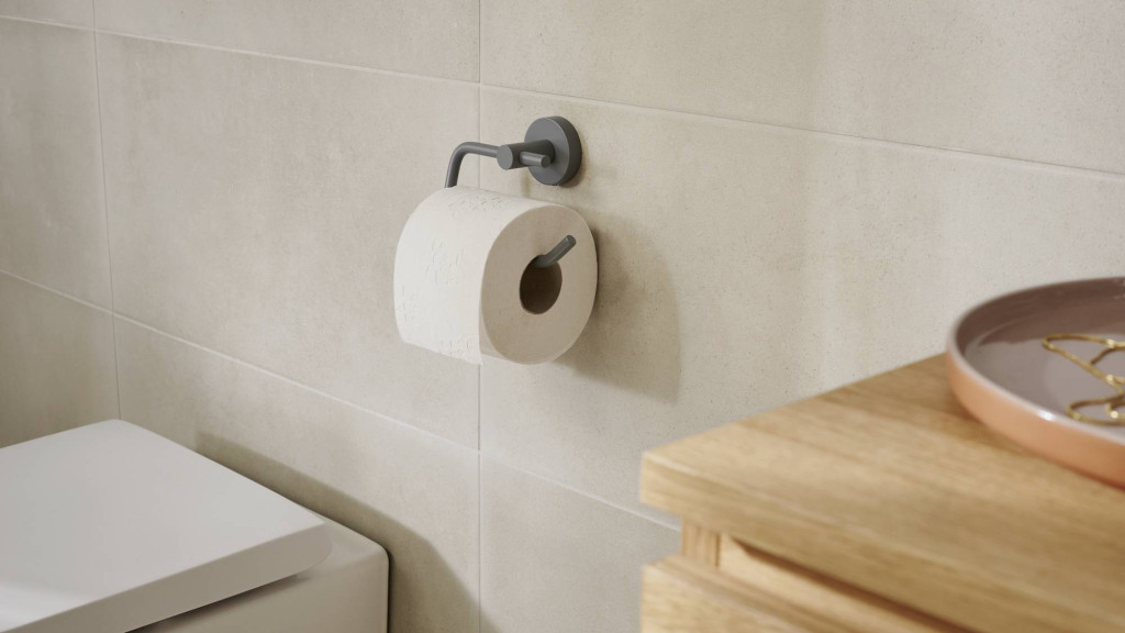 tesa® MOON GREY wc papír tartó, matt szürke - tekercstartó fedél nélkül ipari stílusú és modern fürdőszobákba