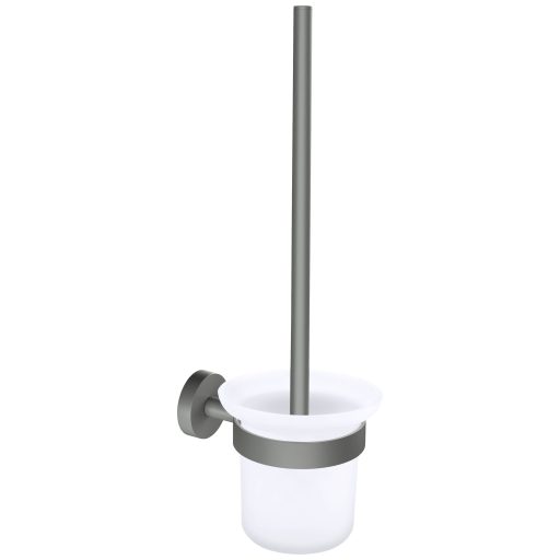 tesa® MOON GREY WC készlet, készlet tartóval és WC kefével, matt szürke, matt üveg - 379 mm x 112 mm x 145 mm