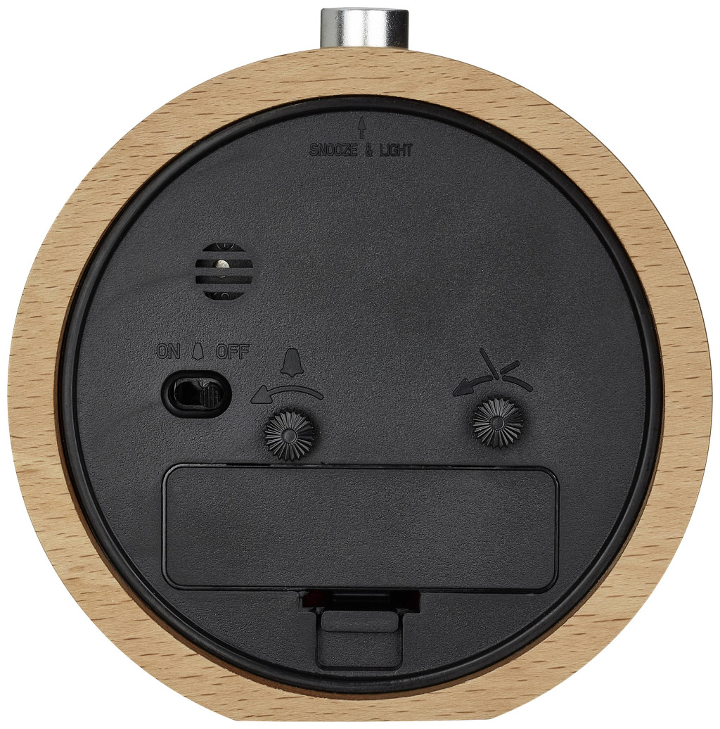 Ez a tömör bükkfa kerettel rendelkező analóg ébresztőóra természetes lakókörnyezetbe illeszkedik. A kerek számlap gombnyomásra megvilágított, így sötétben is könnyen olvasható.