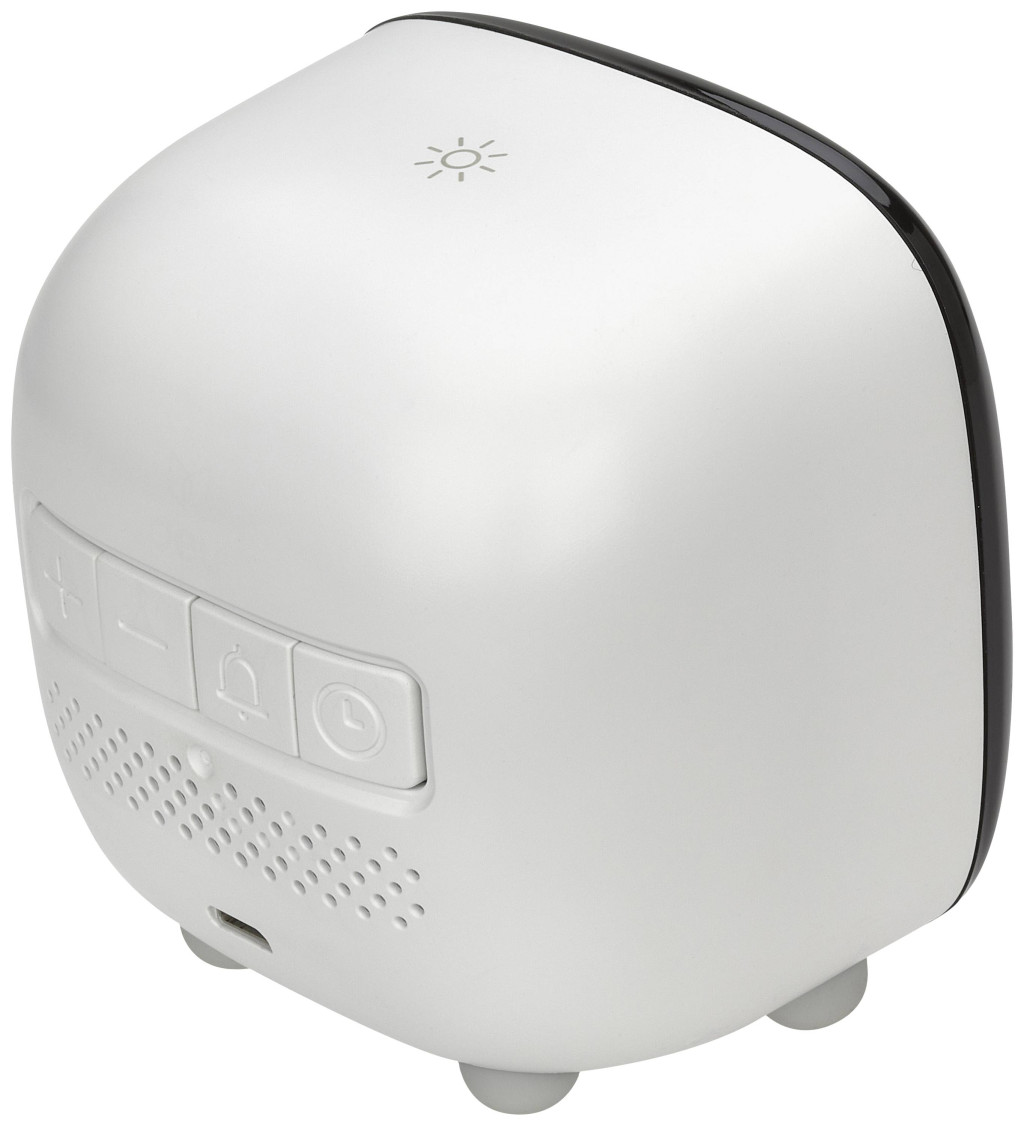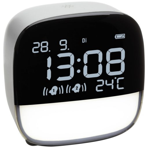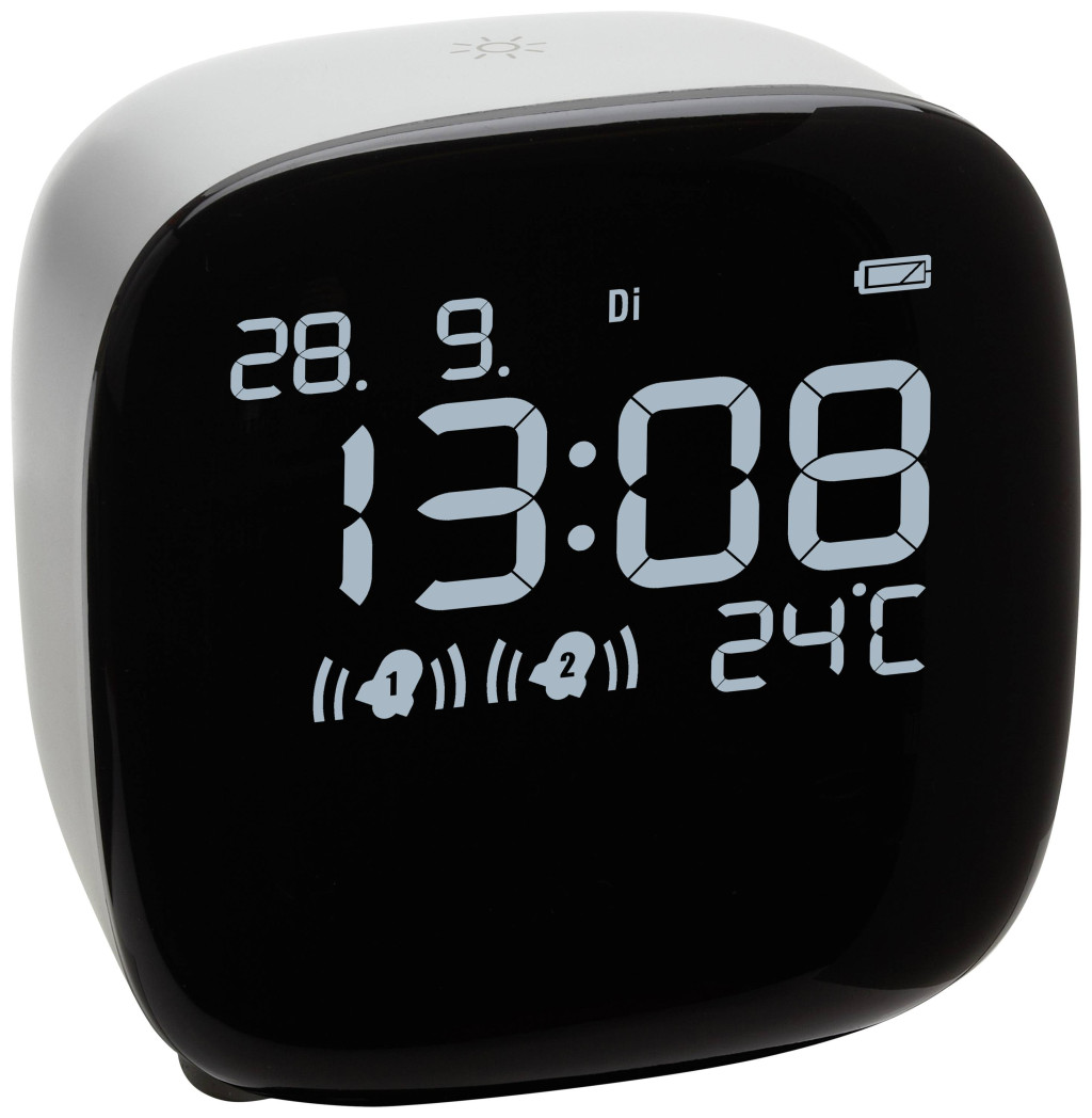 Ez a digitális ébresztőóra számos funkcióval és beállítási lehetőséggel lep meg, köztük a beépített éjszakai lámpával. Matt lakkozott házával és modern, lekerekített formájával minden éjjeliszekrényen finom alakot vág. Az ébresztőórát hálózatról vagy elemről is használhatja.