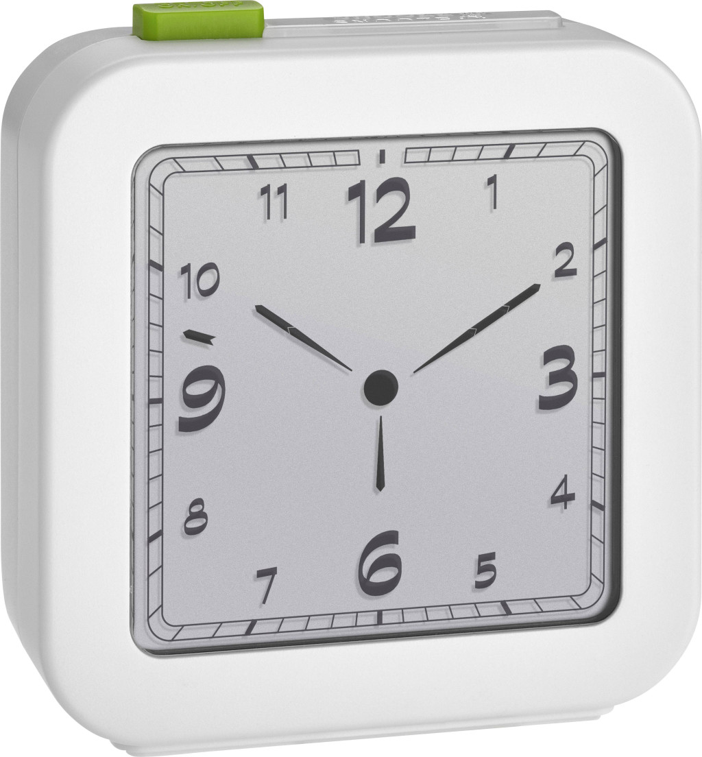 A digitális rádiós ébresztőóra rendelkezik bizonyos analóg varázssággal, de rendelkezik a digitális ébresztőóra összes előnyeivel. Az időt a másodpercre állítják egy atomi óra által generált DCF77 jel segítségével, és a szundi funkcióval ellátott ébresztési riasztás időben reggel kialszik az alvásból. A színes ébresztő gomb egyértelműen jelzi, hogy az ébresztőóra be van-e kapcsolva. Ha megnyomja az ébresztőóra tetején lévő nagy gombot, a négyzet alakú LCD tárcsa rövid időre világosan világít, és az egész térségben világít. Ha egész éjjel szeretné látni az időt, választhat finom és gazdaságos éjszakai megvilágítást is, amely automatikusan be- és kikapcsol az integrált fényérzékelőn keresztül. A digitális ébresztőóra másik gyakorlati jellemzője a reteszelő funkció, amely deaktiválja az összes gombot és ideális utazási ébresztőóravé teszi a kompakt készüléket. Időkülönbséggel történő utazáskor az időzóna javítható, vagy az idő manuálisan beállítható.