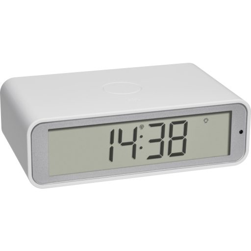 Műszaki adatok: Funkciók (órák): 12 órás kijelzés, 24 órás kijelzés, Riasztás, Állítható időzőnák, Rádiójel (DCF77), Ébresztés ismétlés · Ház anyaga: Műanyag · Házszín: Fehér · Kijelző (digitális/mechanikus/analóg): digitális · Kivitel (órák): Rádiójel vezérlésű · Méret, hossz: 117 mm · Méret, magasság: 37 mm · Méret, szélesség: 71 mm · Riasztási idők: 1 · Tápellátás: 2 db ceruzaelem (nem szállítjuk vele) · Vezeték nélküli töltő funkció: Nem