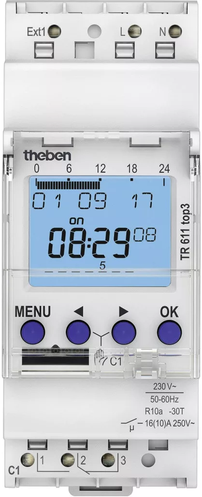 Műszaki adatok: Alkalmazás helye: Beltér · Időkapcsoló óra típus: Digitális · Kapcsolási ciklus: Heti program · Kapcsolási teljesítmény (max.): 2600 W · Kapcsolóóra jellemzők: Visszaszámláló funkció, Óraszámláló, Véletlen kapcsolás funkció · Legrövidebb kapcsolási idő: 1 mp · Max. kapcsolási áram: 10 A · Méret, magasság: 90.1 mm · Méret, mélység: 69.2 mm · Méret, szélesség: 38.5 mm · Védelmi típus: IP20 · Üzemi feszültség: 230 V/AC