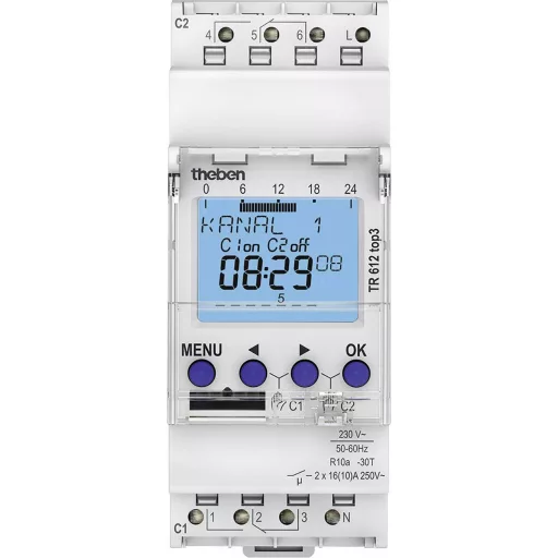 Műszaki adatok: Alkalmazás helye: Beltér · Időkapcsoló óra típus: Digitális · Kapcsolási ciklus: Heti program · Kapcsolási teljesítmény (max.): 2600 W · Kapcsolóóra jellemzők: Kijelző megvilágítás, Maradék működési idő, Nyári- / téli időszámítás átállás (automatikus), Óraszámláló, Szabadságpromramm · Legrövidebb kapcsolási idő: 1 perc · Max. kapcsolási áram: 10 A · Méret, magasság: 90.1 mm · Méret, mélység: 69.2 mm · Méret, szélesség: 35.8 mm · Nyári-/Téli időátállás: automatikus · Védelmi típus: IP20 · Üzemi feszültség: 230 V/AC
