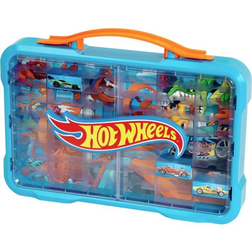 A robusztus vitrin akár 54 autónak is elegendő tárolórekeszeket tartalmaz 1:64 méretarányban (a járművek nem tartozékok). A háttérben egy klassz poszterrel, előtérben pedig egy világító Hot Wheels logóval díszített vitrint szabványos csavarokkal és tiplikkel (nem tartozék) falra szerelheted, vagy a praktikus hordozófogantyúknak köszönhetően bárhová magaddal viheted.