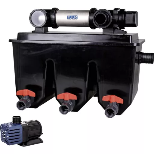 Műszaki adatok: Max. tóméret: 30000 l · Méret, hossz: 385 mm · Méret, szélesség: 585 mm · Szökőkút szivattyú jellemzők: UVC tisztítóval, Szűrő funkcióval · Súly: 15.7 kg · Vezetékhossz: 10 m