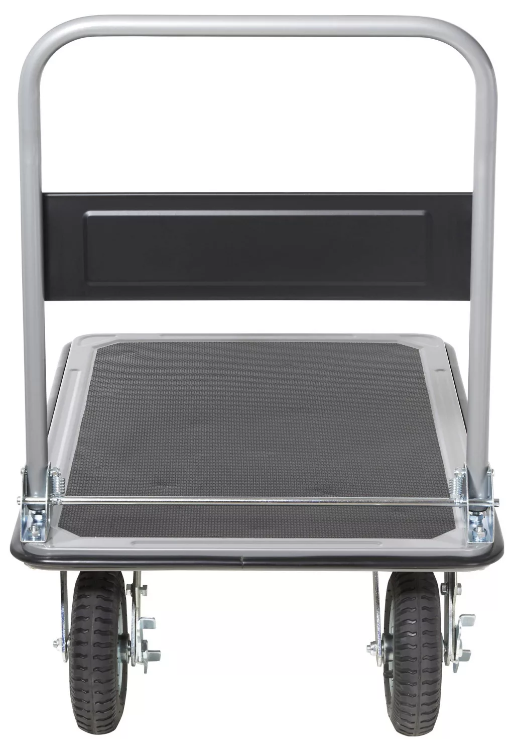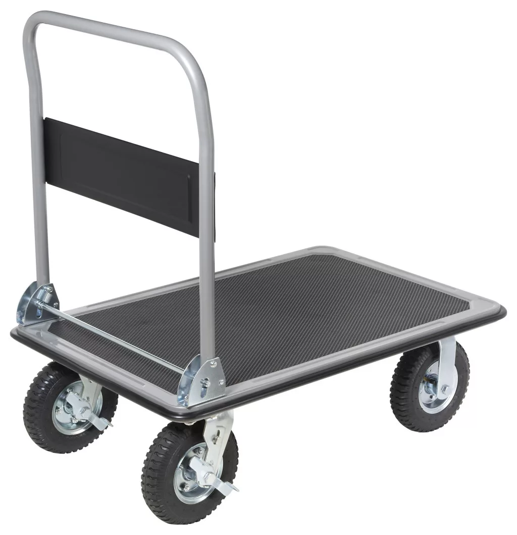Technical specifications: Product.PlasticfreePackaging: #####PlastikfreieVerpackung · Abroncs: Levegős · Anyag: Acél · Kerekek száma: 4 · Kerék méret: 20 cm · Méret (rakodóterület): 900 x 600 mm · Méret, hossz: 900 mm · Méret, magasság: 925 mm · Méret, szélesség: 600 mm · Rakodófelület hossza: 900 mm · Rakodófelület szélessége: 600 mm · Szállítóeszköz jellemzők: Összehajtható · Szín: Fekete,Ezüst · Súly: 21.5 kg · Tartóerő: 300 kg · Terhelés (max.): 300 kg · További műszaki adatok: Platform vastagsága: 0,6 mm