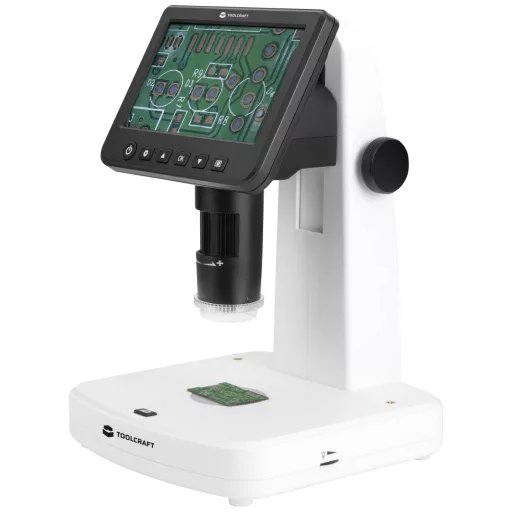 A Toolcraft LCD digitális mikroszkóp polarizátorral rendelkezik, maximális digitális nagyítása 1200x, maximális optikai nagyítása pedig 300x.