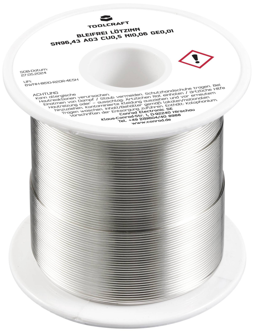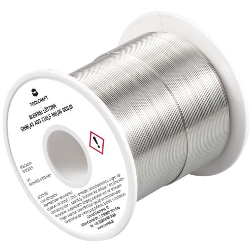 Műszaki adatok: Biztonsági tudnivalók / H mondatok: H 317: Allergiás bőrreakciót válthat ki. · Biztonsági tudnivalók / P mondatok: P 261: Kerülje a por/füst/gáz/köd/gőzök/permet belélegzését., P 280: Védőkesztyű/védőruha/szemvédő/arcvédő használata kötelező., P 333+313: Bőrirritáció vagy kiütések megjelenése esetén: Orvosi ellátást kell kérni., P 362+364: A szennyezett ruhát le kell vetni és az újbóli használat előtt ki kell mosni., P 501: A tartalom/edény elhelyezése hulladékként: … · Biztonsági tudnivalók, GHS: GHS07: Irritáló · Folyasztószer típus: ROL1 · Huzal átmérő: 0.7 mm · Jelölő szó (veszélyes anyag): Figyelem · Kivitel (forrasztóón): Tekercs · Műanyagmentes csomagolás: Műanyagmentes csomagolás · Súly: 250 g · Ötvözet: Sn96,43Ag3Cu0,5Ni0,06Ge0,01