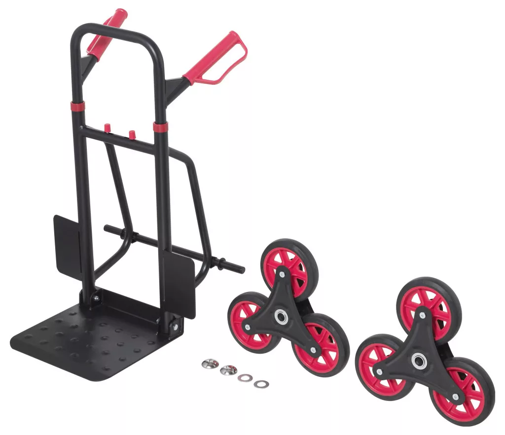 A Toolcraft könnyű szerkezetű és kiváló minőségű kidolgozású kézikocsi 6 kerékkel van felszerelve a lépcsőzés megkönnyítésére.