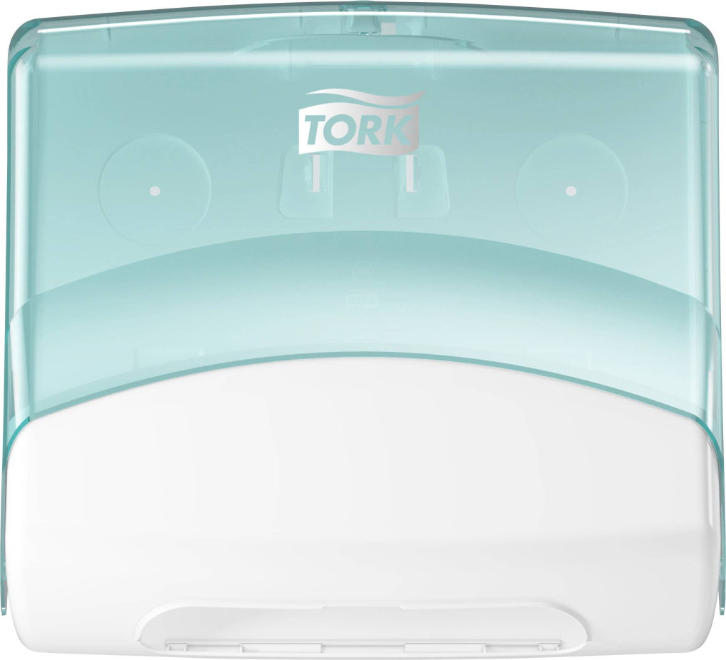 Egy törülközőadagoló fehér és türkizkék W4