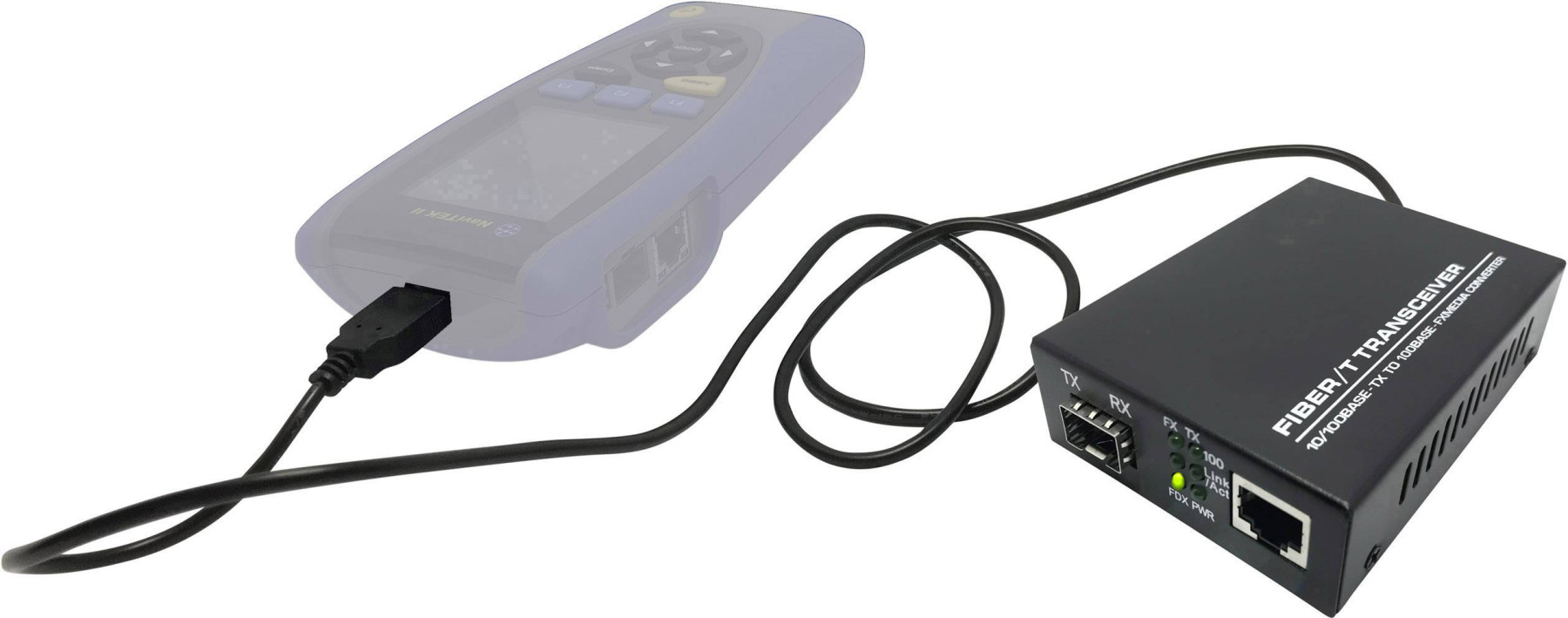 A 100Base-Fx médiakonverterrel beállíthat 100 Mbit optikai szálas kapcsolatot a NaviTEK IE RJ45 csatlakozásán keresztül.