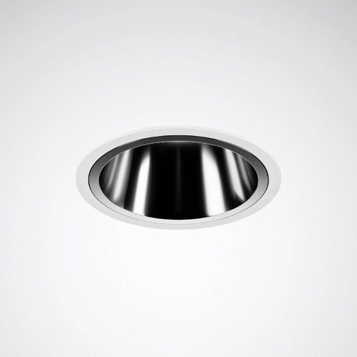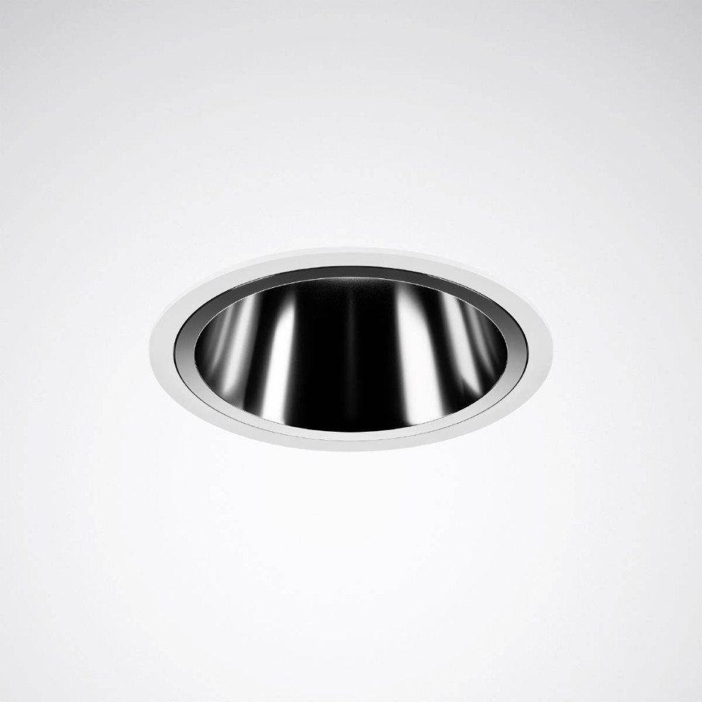 Kompakt LED-es mélysugárzó kerek kivitelben. Süllyesztett alsó lámpa peremmel vágott mennyezeti nyílásokhoz. Mennyezeti kivágási méret Ø 210 mm. Meglévő, nem megfelelő méretű mennyezeti nyílásokba szerelhető felújító panelek külön megrendelendő tartozékként kaphatók. Beépítési mélység nagyobb, mint= 127 mm, lámpatest magassága 130 mm. Magas fényű elpárologtatott műanyag reflektorral. A mennyezeti szerelőkeret színe: fehér. Fényeloszlási jellemzők és félérték szög: 60° nagyon széles elárasztás. Fényszabályozás kollimátor/lencse technológiával. A közvetlen tükröződés korlátozása az UGR 19 szerint. LED modullal. Lámpatest fényáram 2600 lm, csatlakoztatott terhelés 23 W, lámpatest fényhatásfoka 113 lm/W. Fényszín semleges fehér, korrelált színhőmérséklet (CCT) 4000 K, általános színvisszaadási index (CRI) Ra= 80. Színhely-tolerancia (kezdeti MacAdam) = 3 SDCM a LED nagyon magas színegyenletességének felel meg az alkalmazásban. Átlagos élettartam L90 (tq 25 °C) = 50 000 óra, átlagos élettartam L80 (tq 25 °C) = 70 000 óra. Megengedett környezeti hőmérséklet (ta): -20°C - +25°C. Öntött alumínium ház és hűtőborda. Védettségi osztály (EN 61140): II, védettségi fokozat (DIN EN 60529): IP20. Ütésállósági szint az IEC 62262 szerint: IK02/0,2 J, teszthőmérséklet izzóhuzal teszt az IEC 60695-2-11 szerint: 850 °C. 5 érintkezős csatlakozókapocs 2,5 mm²-ig a hálózati csatlakozáshoz és külön 5 tűs hálózati továbbító doboz. Az előtét egy sorkapocs segítségével csatlakozik a hálózathoz. Elektronikus előtéttel, digitálisan szabályozható (DALI). A lámpatest érintés funkcióval kapcsolható és tompítható a DALI vezérlőterminálokon keresztül (Touch DIM). Lehetséges tompítási tartomány: 1...100%. Élő link készen áll. A lámpa megfelel a vonatkozó EU irányelvek és a termékbiztonsági törvény alapvető követelményeinek, és CE jelölést visel. Ezenkívül a lámpa ENEC-tanúsítvánnyal rendelkezik egy független vizsgáló ügynökség által.