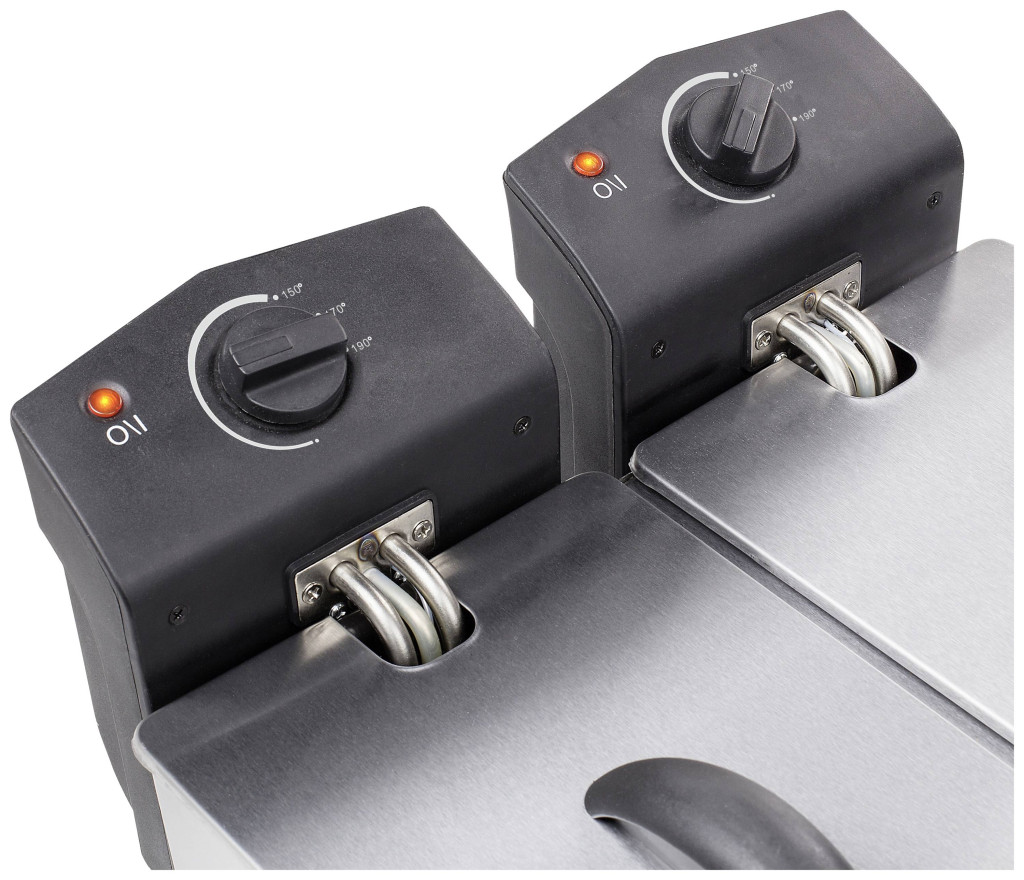 A Tristar olajsütő használata nagyon egyszerű. Mindkét betét saját termosztáttal rendelkezik, amely a forgó vezérléssel akár 190⁰C-ra állítható. Mivel mindkét betét hőmérséklete külön-külön beállítható, különböző termékeket készíthet egyszerre, vagy egyszerre csak az egyik betétet használhatja. Ha használat után el szeretné helyezni az olajsütőt, egyszerűen hajtsa le a fogantyút anélkül, hogy hozzá kellene érnie a zsírhoz. A kábel egy speciális rekeszben tárolható.
