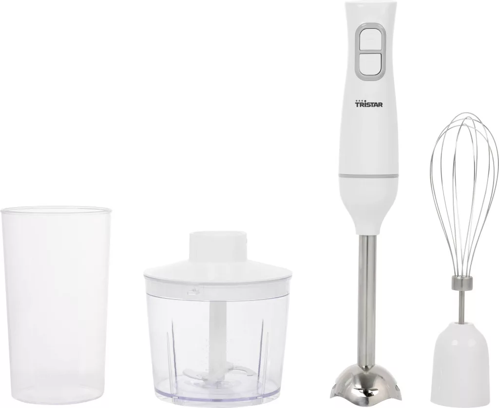A Tristar MX-4881 botmixerrel pillanatok alatt elkészítheti a legfinomabb friss leveseket, szószokat, turmixokat és még sok mást! A kompakt botmixer 350 wattos teljesítményének köszönhetően a konyhája nélkülözhetetlen része, habverővel, aprítóval és mérőpohárral együtt.